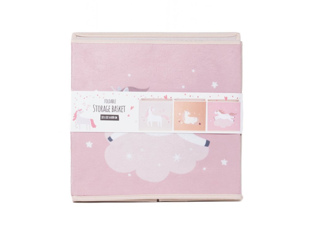 - Půvabné téma jednorožce: Úložný box na hračky s barevným potiskem jednorožce, dostupný v růžové, bílé a béžové barvě, ideální pro dětský pokoj.