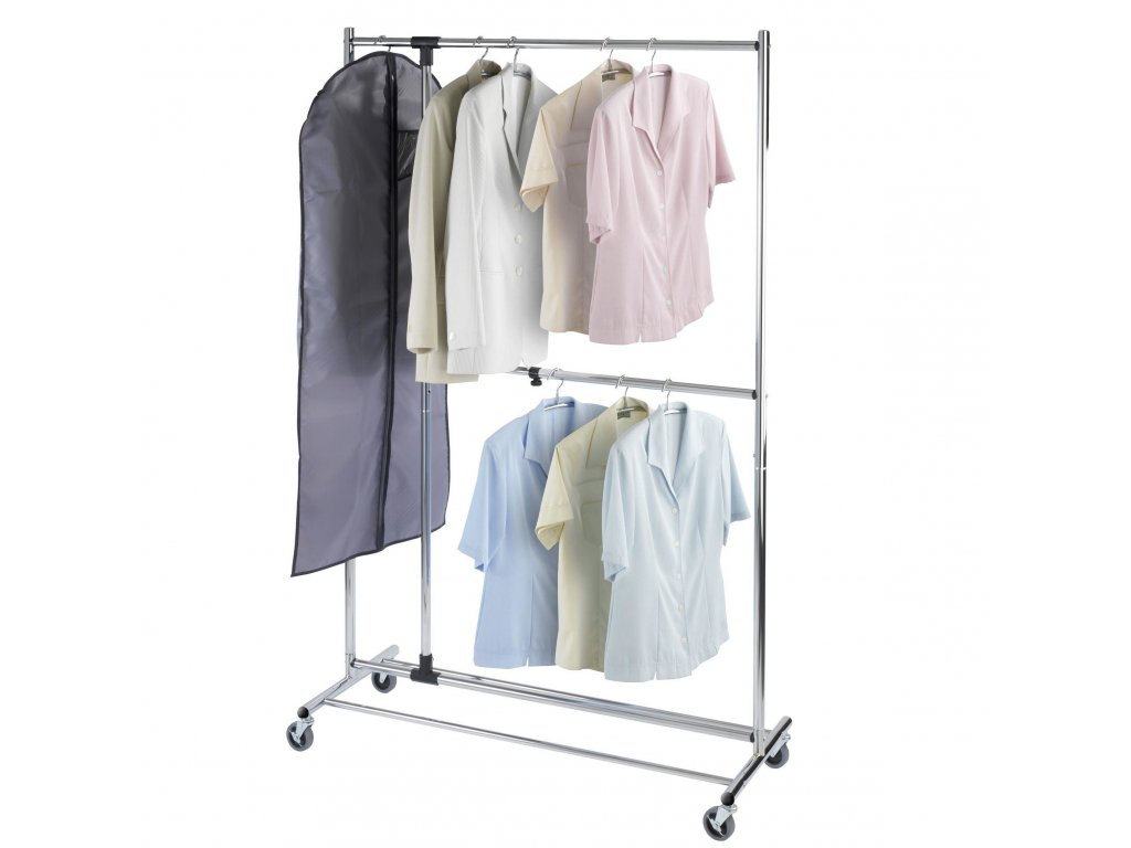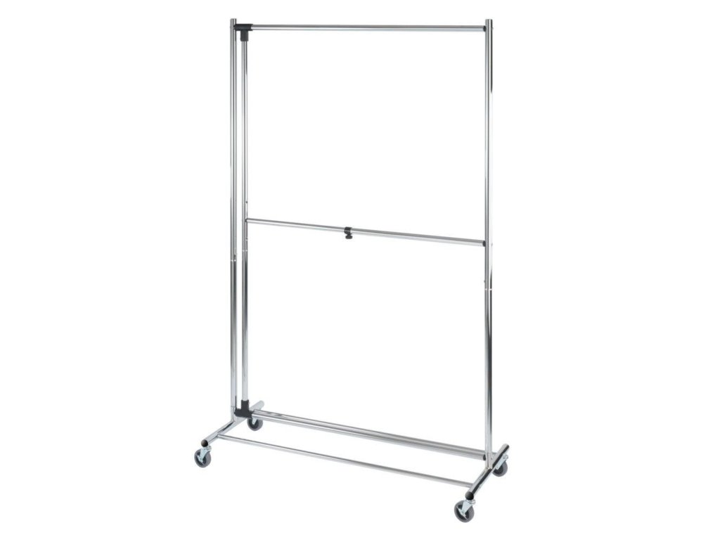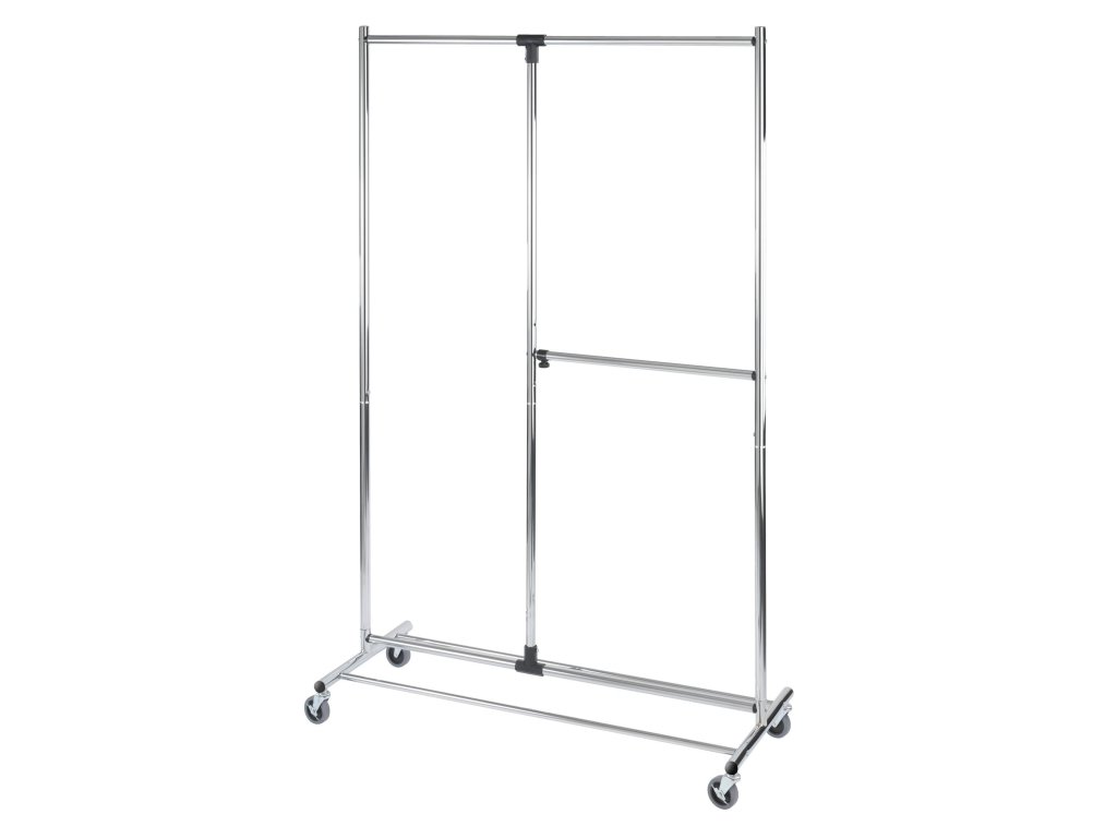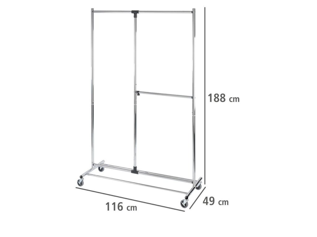 Věšák značky WENKO má rozměry: délka: 116 cm, šířka: 49 cm a výška: 188 cm, díky čemuž se bez problémů vejde do každého bytu a pojme velké množství oblečení. Má 2 tyče, které vytvářejí dvě úrovně, na kterých lze pověsit oblečení. Díky použití chromované oceli má věšák krásný vzhled a skvěle se prezentuje v každém interiéru.
