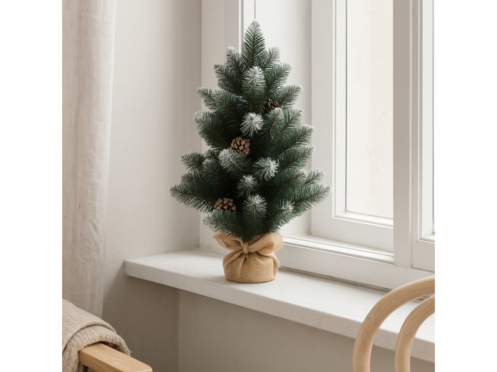 Zasněžený umělý vánoční stromek se šiškami, 60 cm