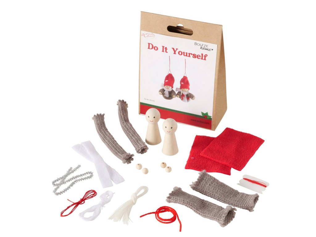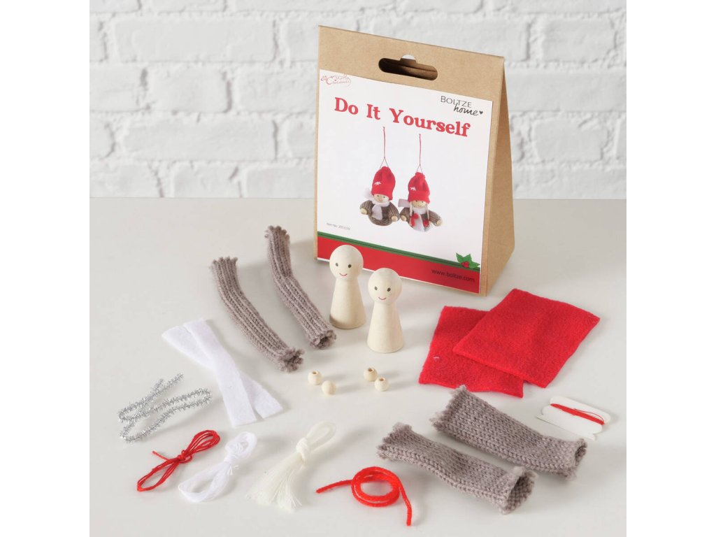 - DIY sada na samostatnou výrobu ozdob: Ideální pro děti a dospělé, kteří chtějí rozvíjet své manuální dovednosti a kreativitu. Sada obsahuje všechny nezbytné materiály k vytvoření dvou roztomilých postaviček.