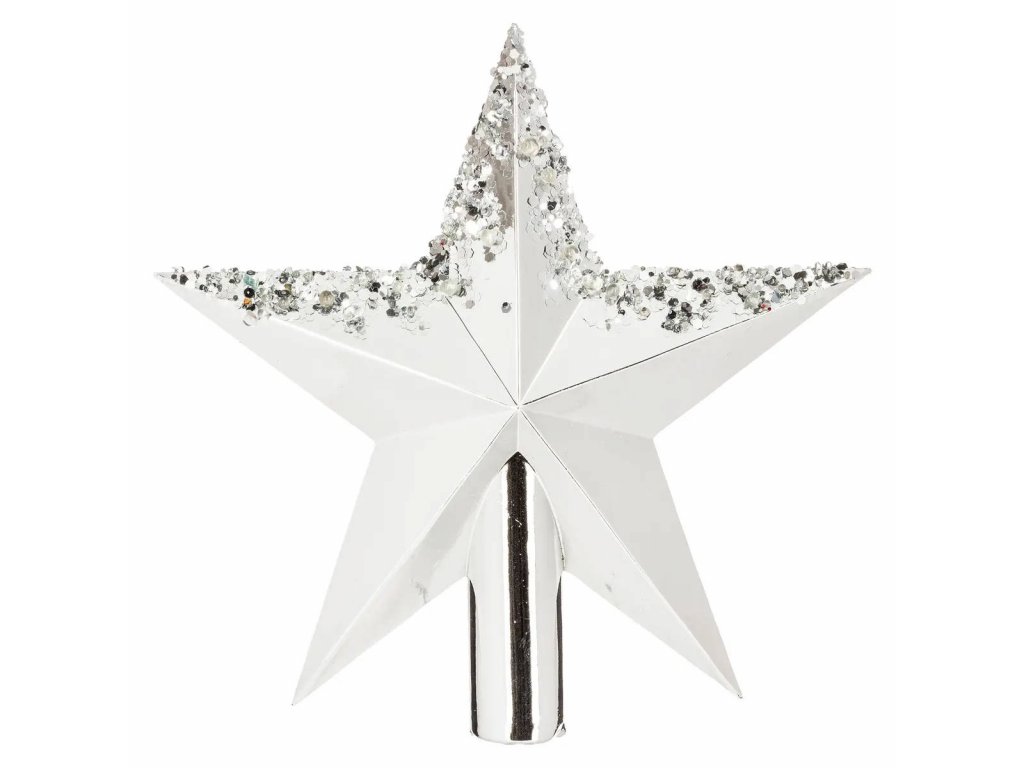 Hvězda na vánoční stromeček, 22 cm, stříbrná barva