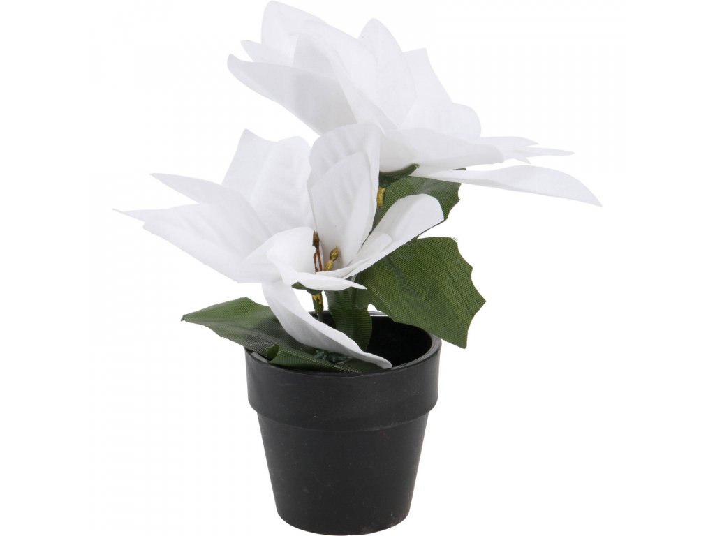 Umělá betlémská hvězda v květináči, výš, 18 cm, bílá