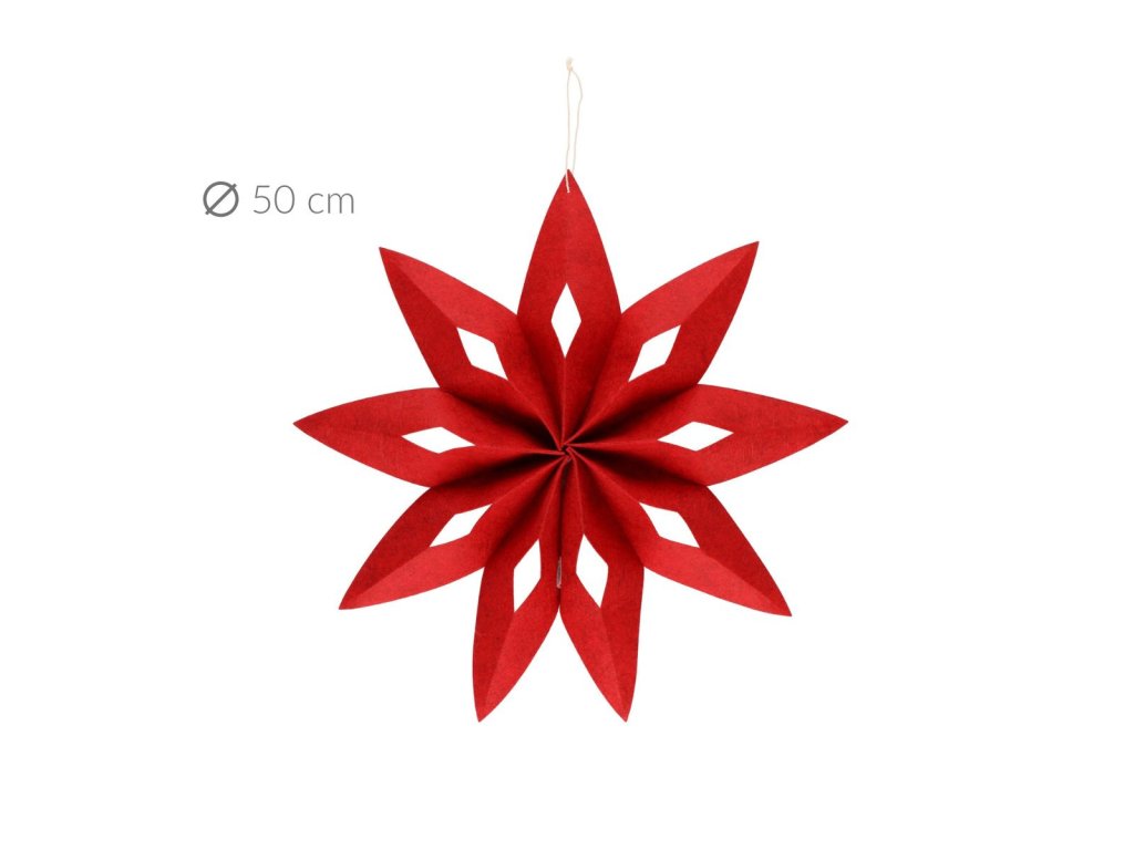 - Stylová vánoční dekorace: Vánoční hvězda z filcu o průměru 50 cm je ideální způsob, jak přinést vánoční atmosféru do vašeho interiéru. Její intenzivní červená barva přitahuje pozornost a dodává radost každé místnosti.