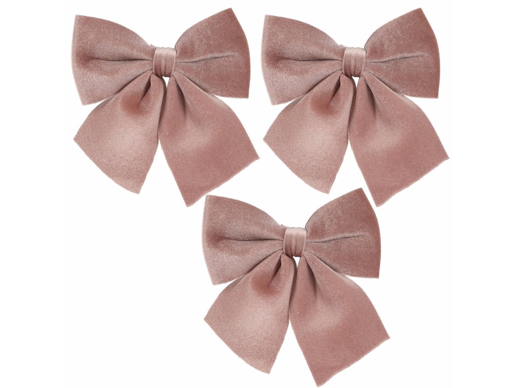 Vánoční mašle na stromeček, textilní, 3 kusy, 10 x 9 cm, růžová barva