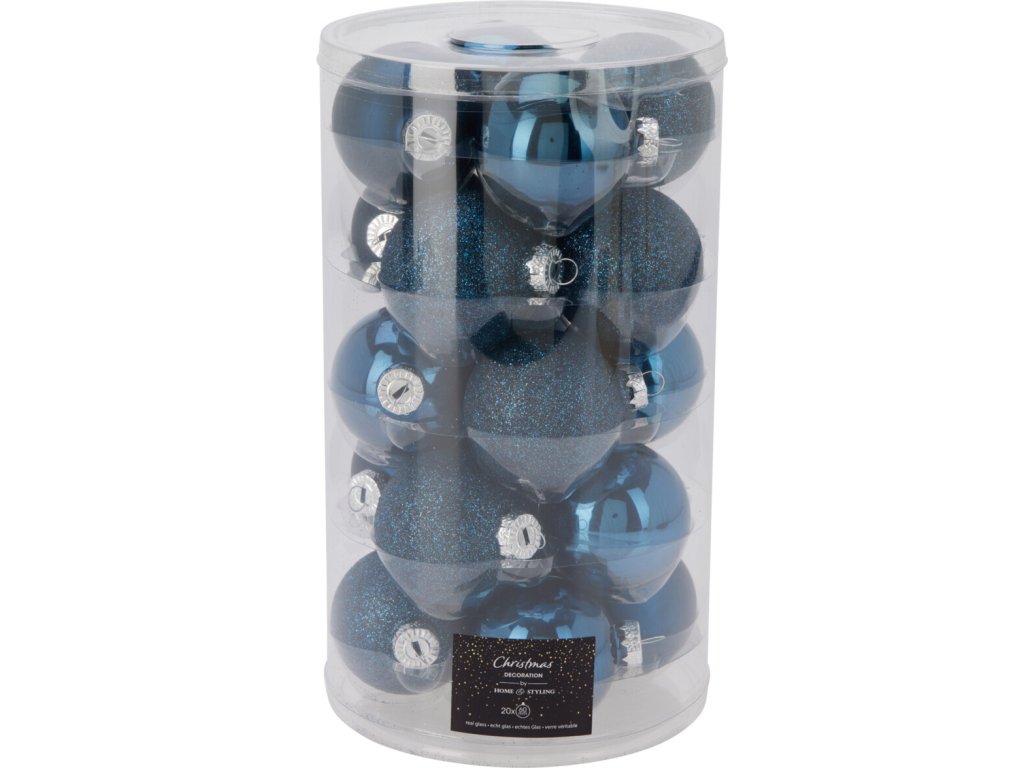 - Elegantní sada baňek: Skleněné vánoční baňky o průměru 6 cm v modré barvě jsou ideální volbou pro každý stromeček. V sadě se nachází 20 kusů, což umožňuje vytvořit výjimečnou dekoraci.