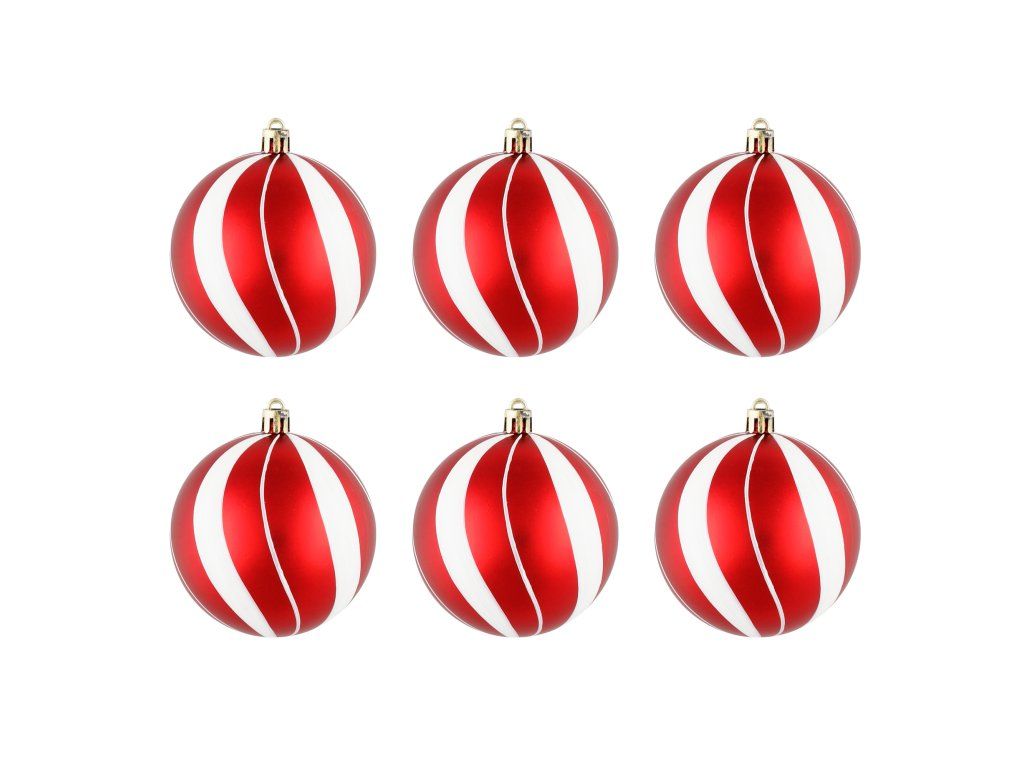 Vánoční ozdoby 8 cm červeno-bílé sada 6 kusů lehké a odolné proti rozbití - ideální pro dekoraci stromečku bez obav o poškození