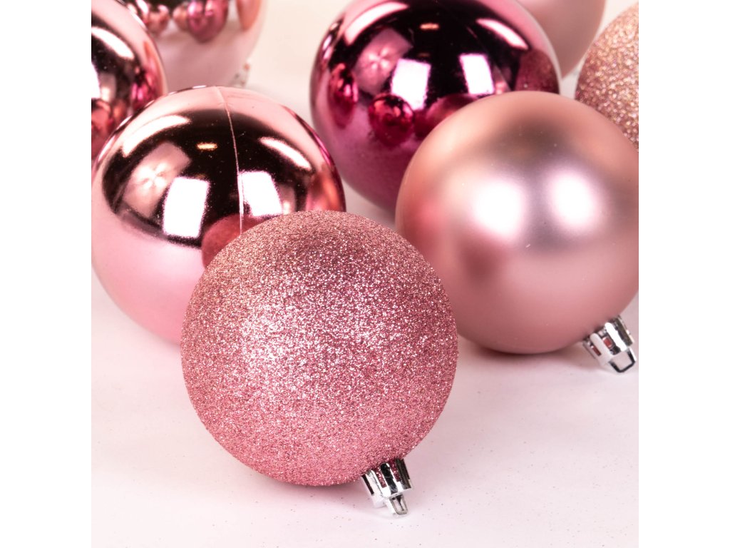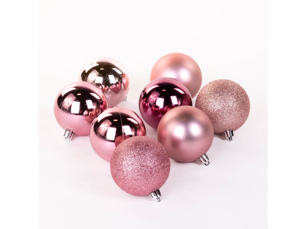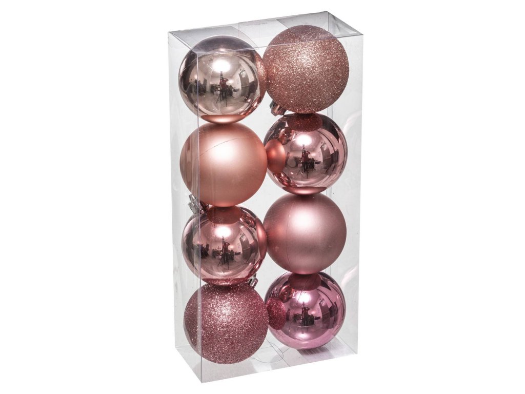 Vánoční koule, sada 8 kusů, růžová barva, 7 cm