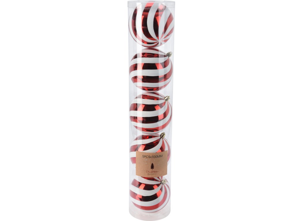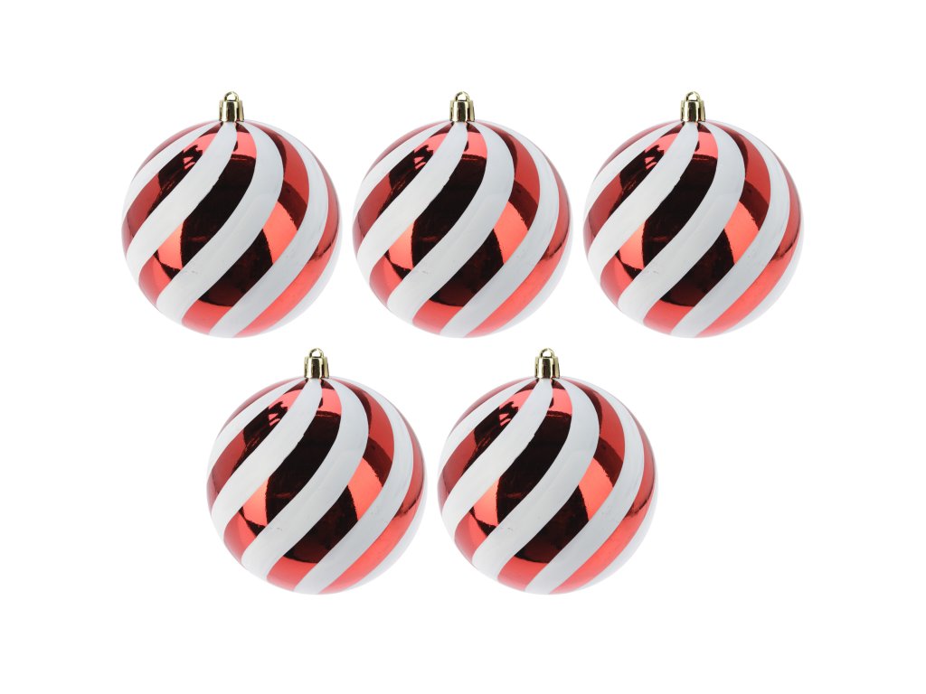 Odolné vánoční ozdoby červeno-bílé 10 cm sada 5 kusů - odolné proti poškození, ideální pro domovy s dětmi a zvířaty
