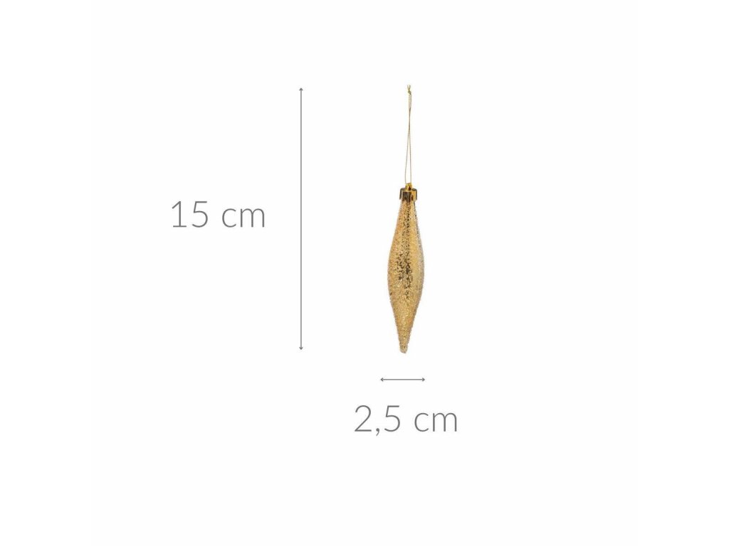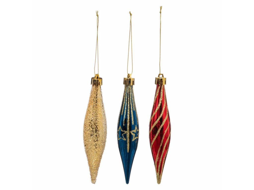 - Vánoční koule ve tvaru rampouchů z plastu, 3 kusy: Tato vánoční dekorace se skládá ze tří kouliček ve tvaru rampouchů. Mají rozměry 2,5 x 2,5 x 15 cm a jsou vyrobeny z odolného plastu. Ideální pro ozdobení vánočního stromečku nebo jiných interiérů během Vánoc.