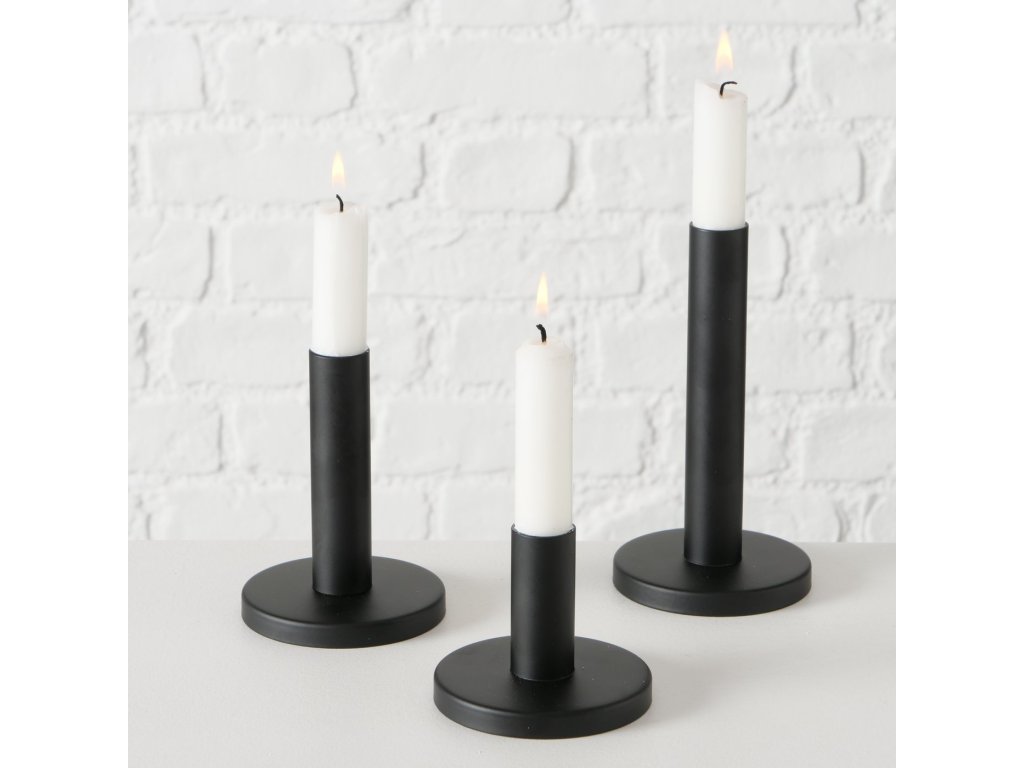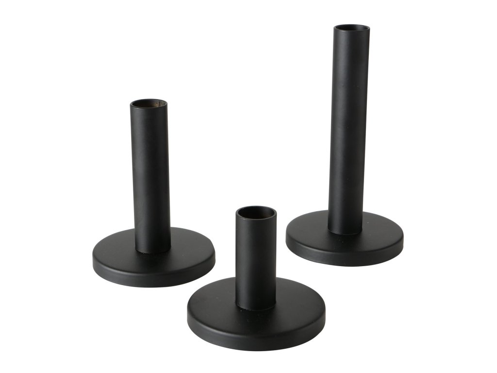 Kovový svícen, 16 cm, 3 kusy, MALKO, černý