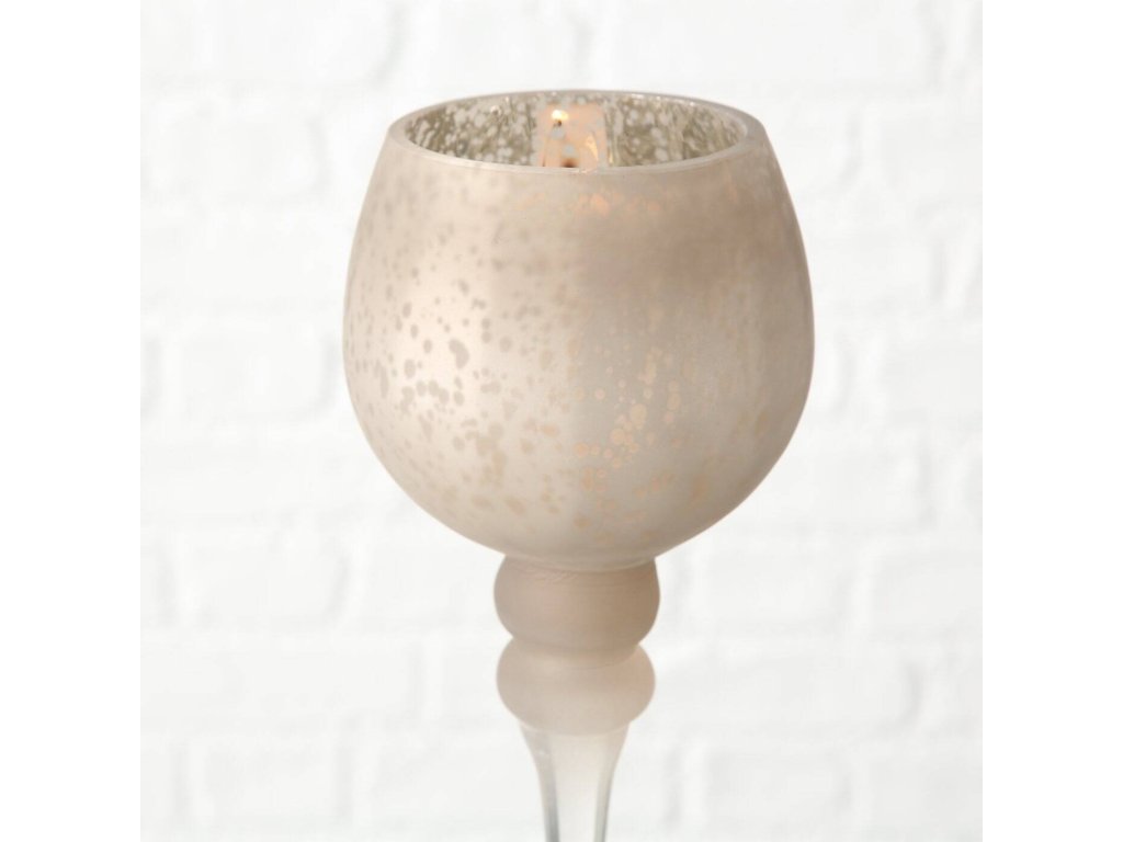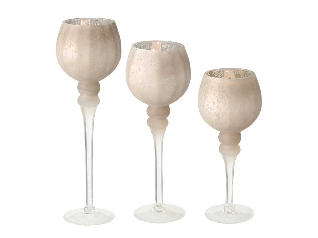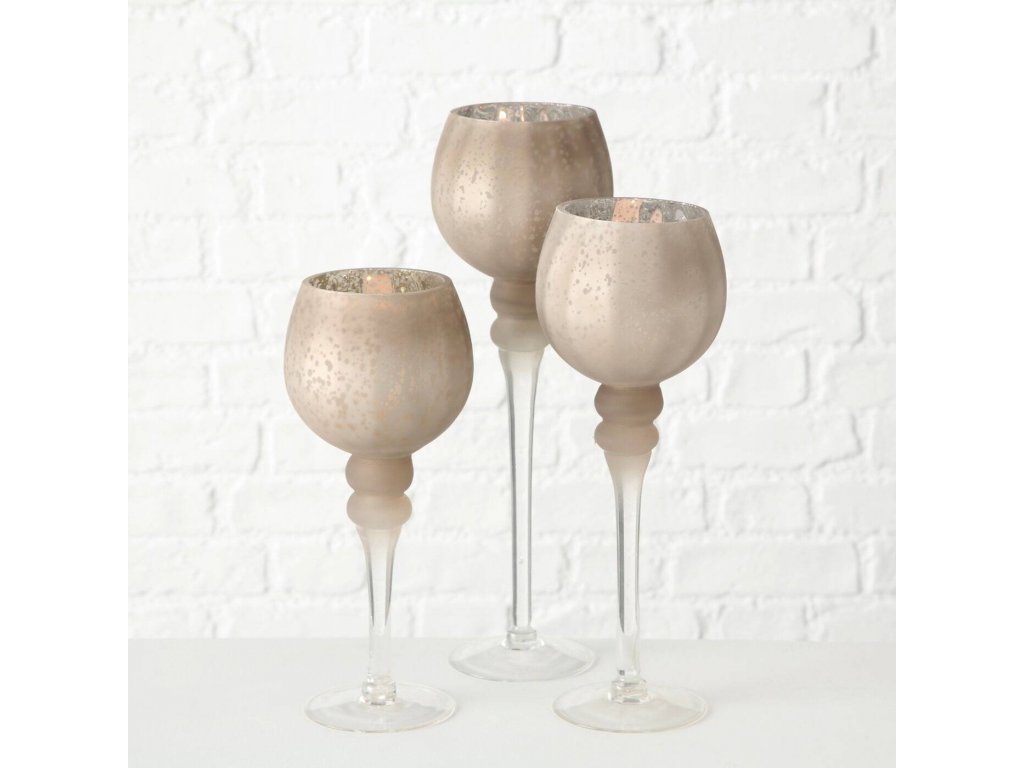 Skleněné svícny, vysoké kalichy v šampanské barvě, 3 ks