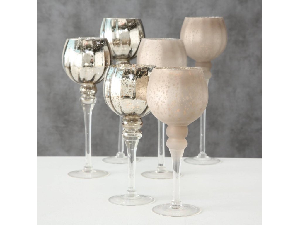 Svícen na tealight, skleněný v barvě šampaňského - sada efektních pohárů na vysoké nožce