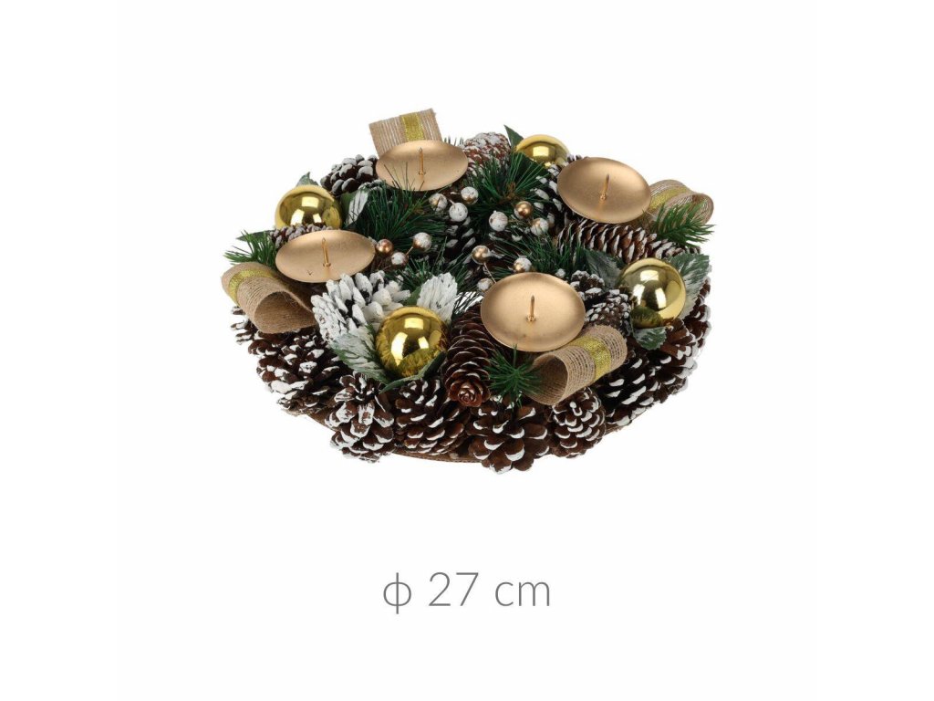 - Luxusní provedení: Sada obsahuje svícen v zlaté nebo stříbrné barvě a sametovou stužku, které dokonale doplňují celek a dodávají lesk vánočnímu aranžmá.