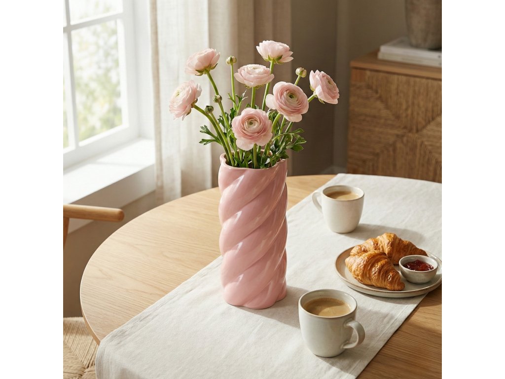 - Elegantní design: Keramická váza o výšce 25 cm a průměru 12,5 cm se vyznačuje moderním, cylindrickým tvarem se spirálovým reliéfem, který přitahuje pozornost a dodává charakter každému interiéru.