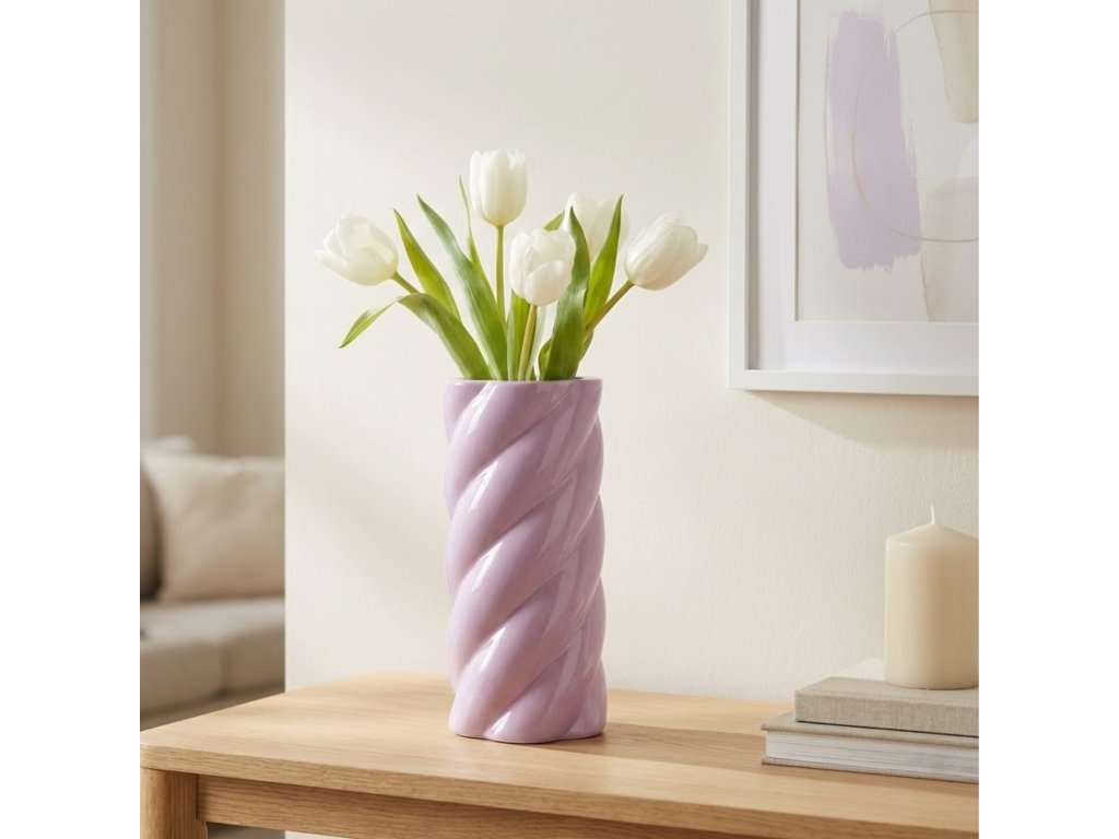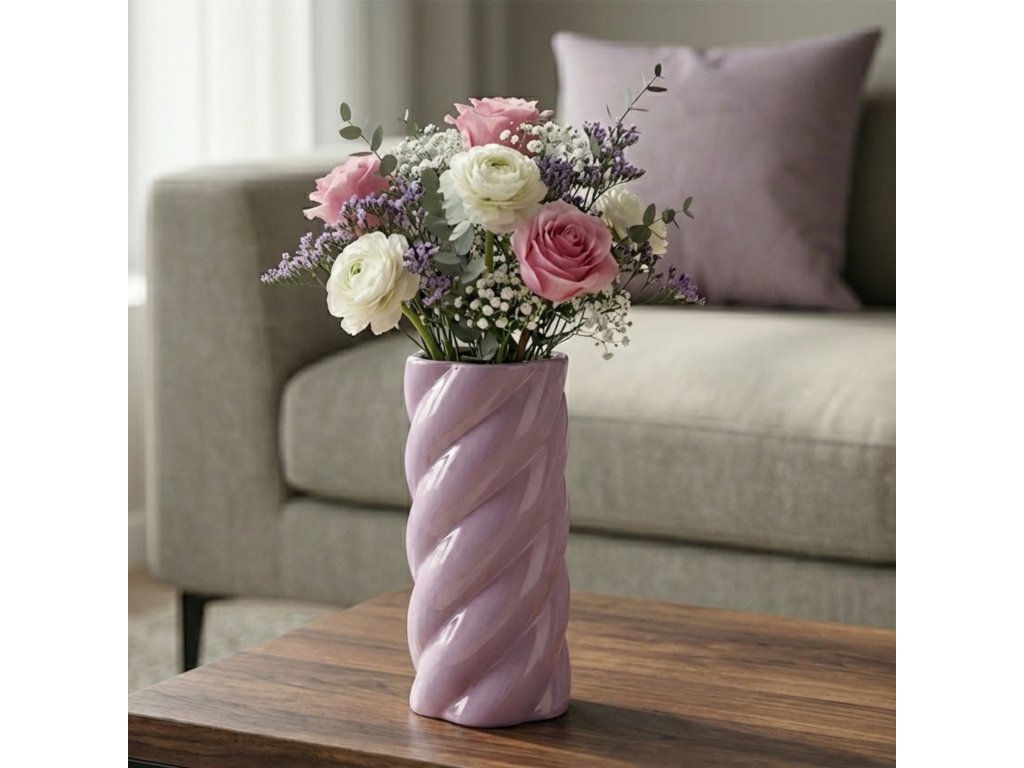 - Elegantní design: Keramická váza o výšce 25 cm a průměru 12,5 cm se vyznačuje moderním, cylindrickým tvarem se spirálovým reliéfem, který přitahuje pozornost a dodává charakter každému interiéru.