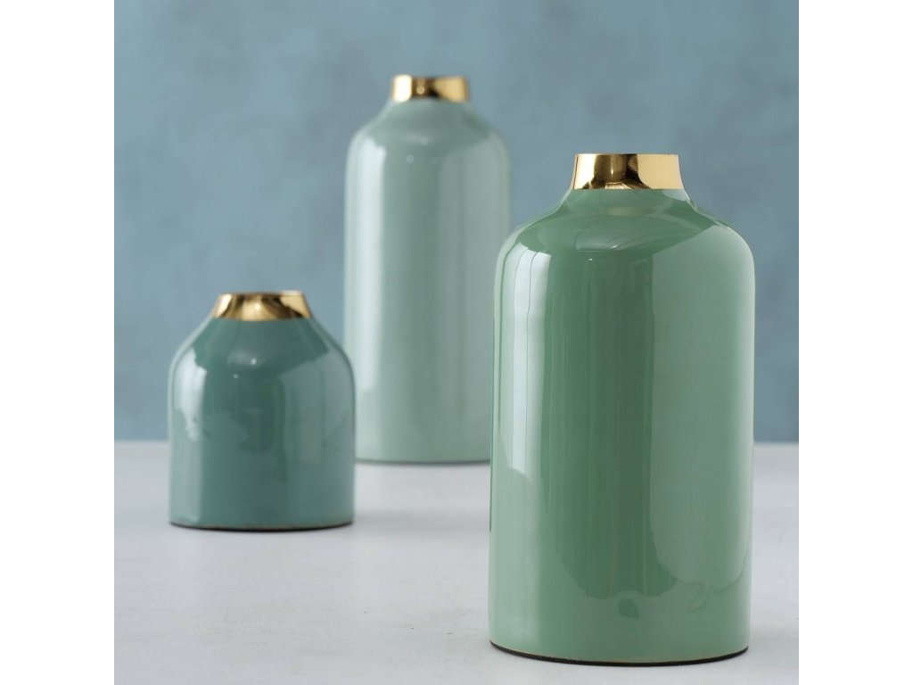 - Lakovaný modrý železný materiál s pozlaceným okrajem: Podtrhněte charakter svého interiéru pomocí těchto krásných modrých váziček, které mají zlaté detaily, dodávající eleganci a jedinečnost.