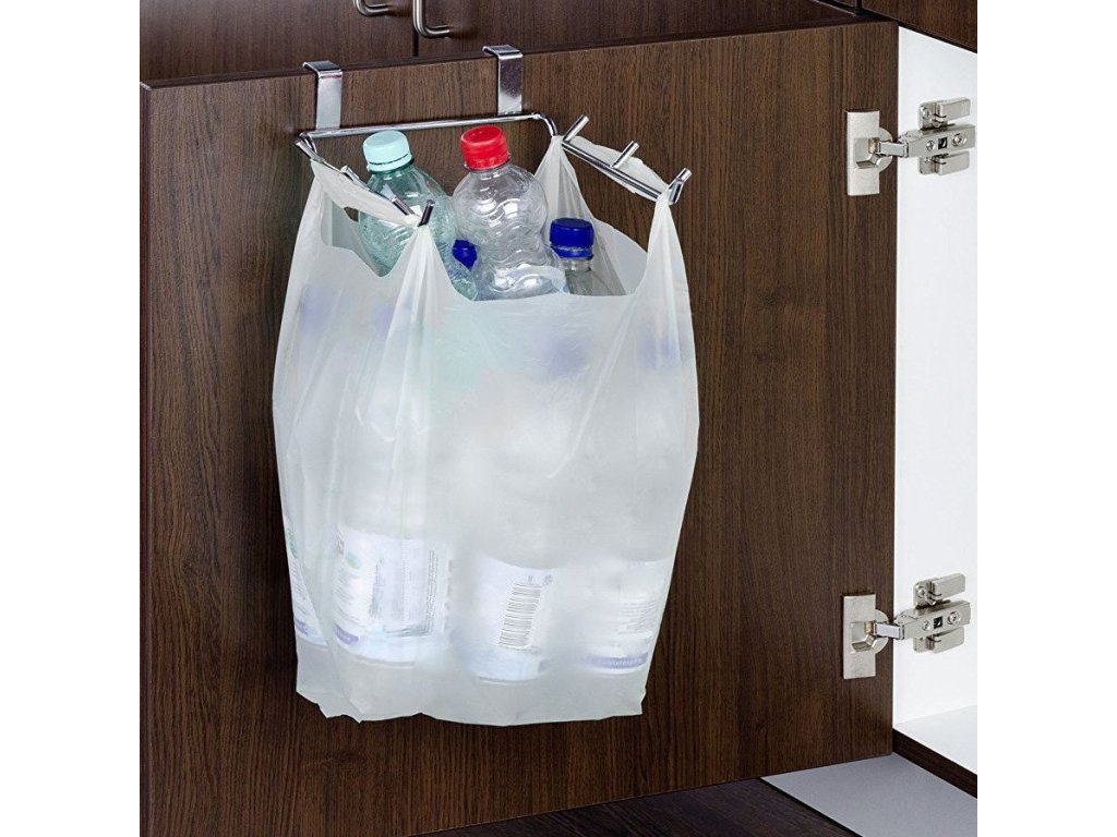Držák pytlů na odpadky, nenápadný ale velmi praktický doplněk do každé kuchyně! Ideální pro použití uvnitř skříněk, stejně jako na skříňky. Může sloužit jako odpadkový koš na slupky. Snadná a rychlá montáž - stačí jen pověsit na dvířka a hotovo!. Tím zajistíte, že bude na všech místech je ho nejvíce v ten moment potřeba. Ideální pro malé kuchyně, kde není prostor pro další kontejnery pro třídění odpadu. Vhodný pro všechny standardní kuchyňské skříňky. Nezpůsobuje problémy se zavíráním dvířek. Nepoškrábe povrch.