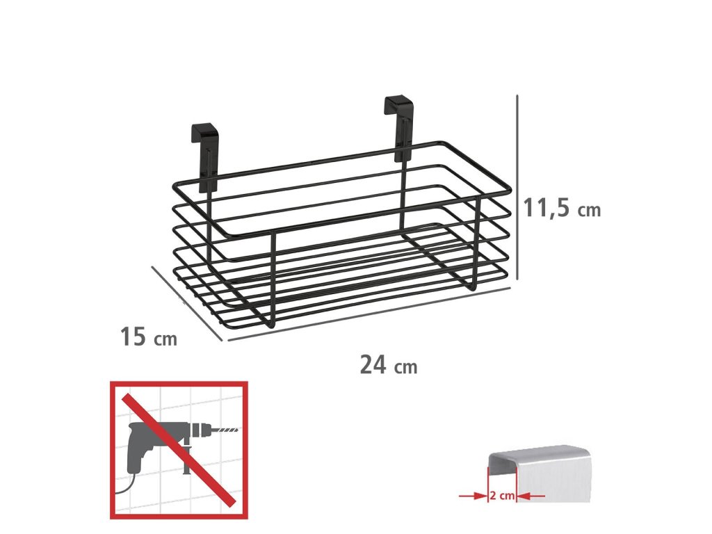 Snadná montáž – stačí ji jen zavěsit na horním okraji, po vnitřní straně dvířek skříňky a hotovo. Pasuje do všech standardních kuchyňských skříněk. Není problém s uzavíráním dvířek. Nereze povrch.