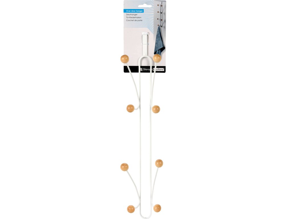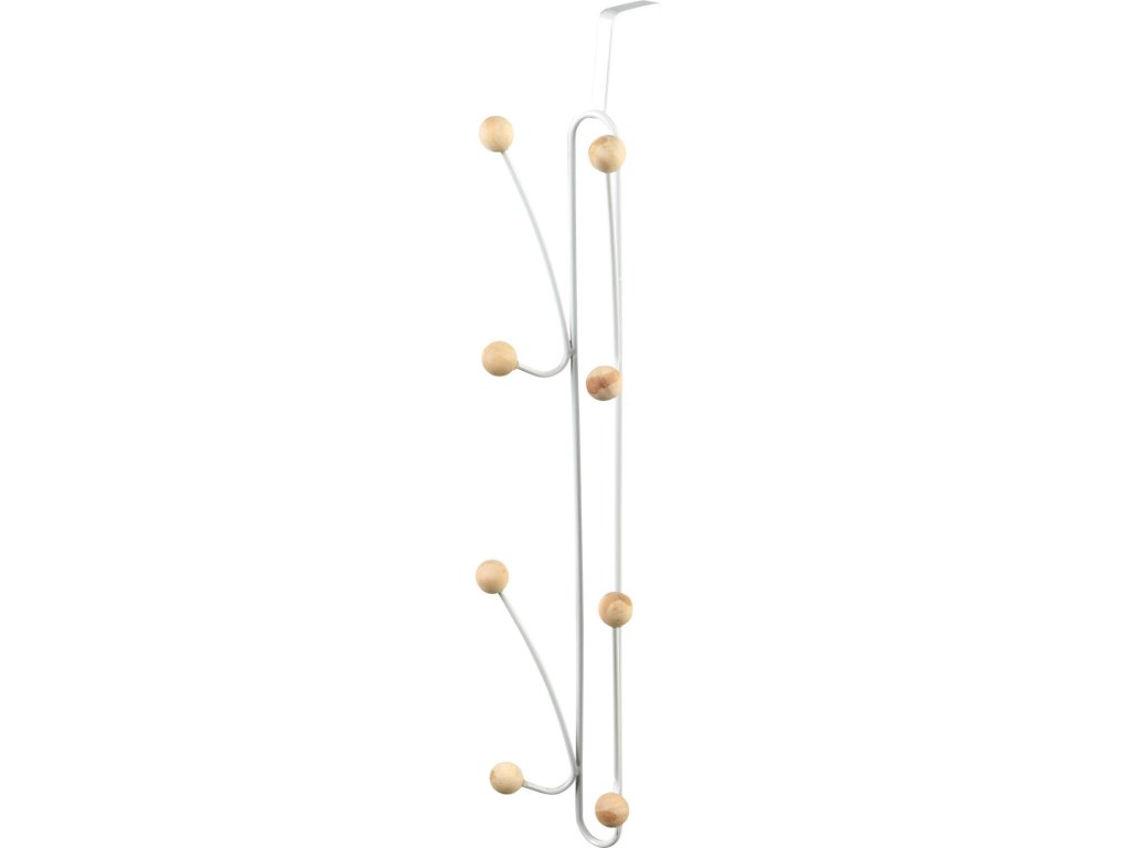 Bílý dveřní věšák, kovový, 8 dřevěných háčků, 44 x 9 x 8,5 cm
