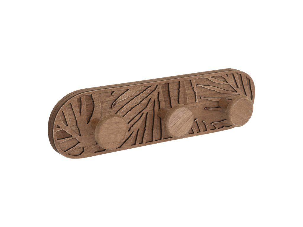 Věšák je vyroben z MDF. Rýhovaný listový vzor na povrchu věšáku dodává autentičnost a charakter. Věšák je dlouhý 38 cm a vysoký 10cm. Díky třem háčkům pojme zimní bundy a šály i mnoho dalších svrchních oděvů.