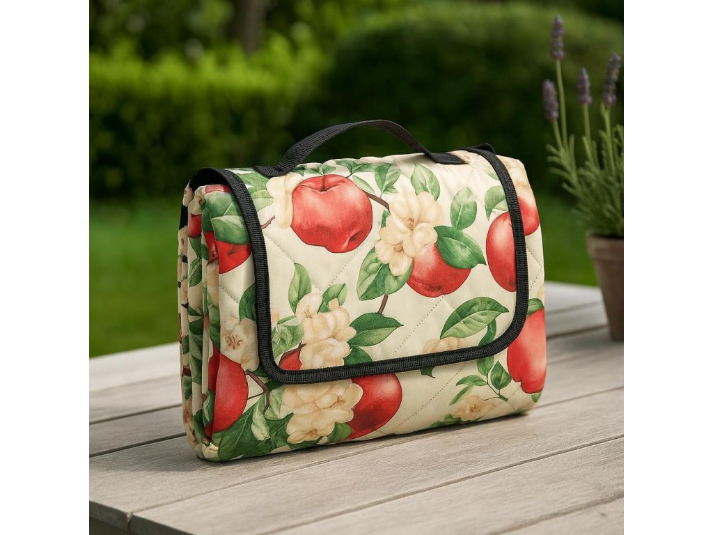 - Stylový design: Deka je dostupná v různých vzorech, jako jsou pomeranče, jablka nebo citrony, což jí dodává kouzlo a činí ji vizuálně atraktivní. Díky tomu se stane nejen praktickým doplňkem, ale také stylovým prvkem vašeho piknikového setu.