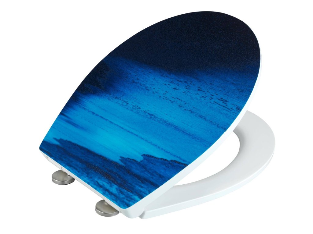 Vyměnitelné toaletní prkénko DEEP SEA s mořskými vlnami se ideálně hodí do aranžmá stylové koupelny. Díky použití univerzálních barev bude vhodné jak do moderních interiérů, tak i do těch zařízených v tradičnějším stylu. Po výměně toaletního prkénka koupelna získá svěží charakter a upravený vzhled.