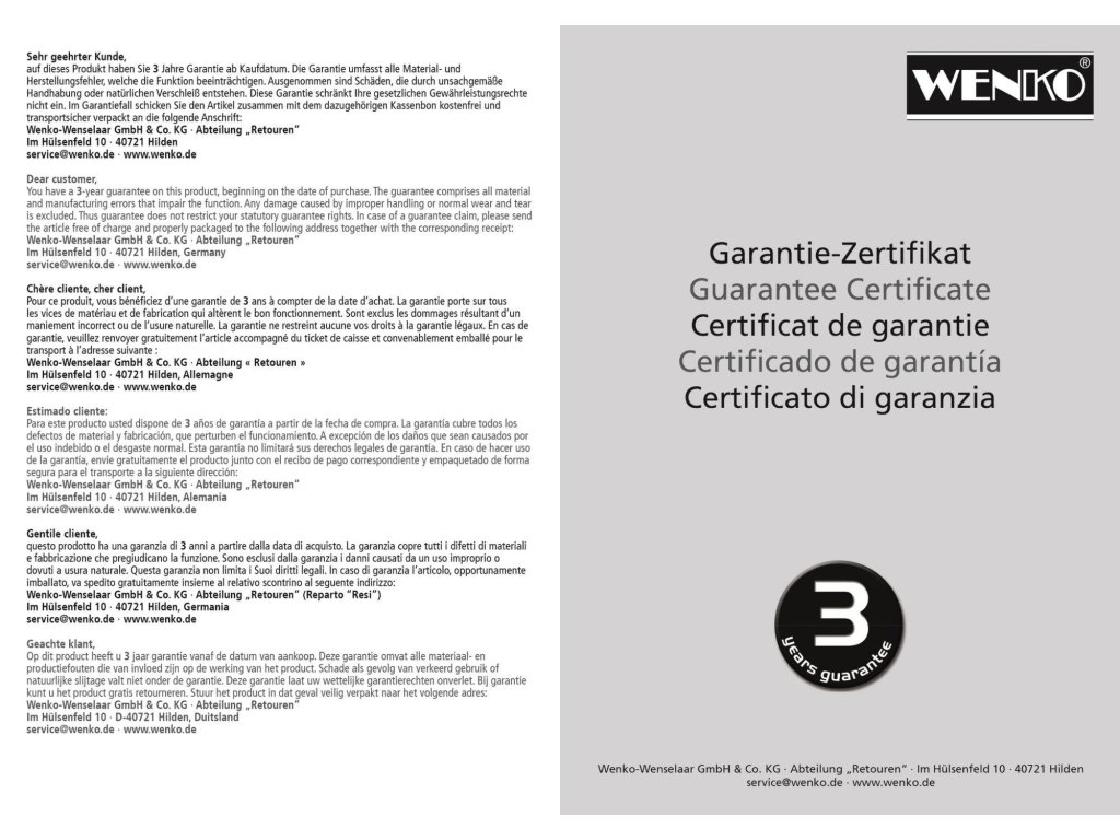 | ? Odpovědná osoba: | Wenko-Wenselaar GmbH & Co. KG |