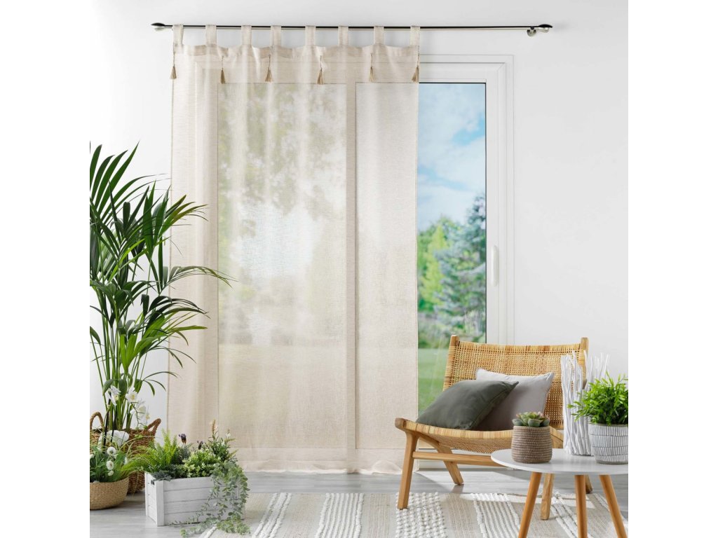 Záclona s dekoračními střapci DALILA, 140 x 240 cm, béžová