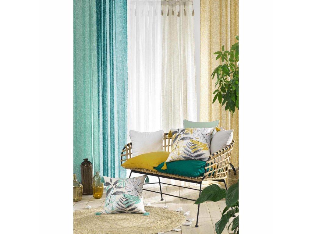 - Materiál: Záclona je vyrobena ze syntetické tkaniny. Materiál připomíná len, ale kombinuje všechny výhody syntetických tkanin, jako je snadná údržba a odolnost. Navíc vypadá velmi přirozeně.
