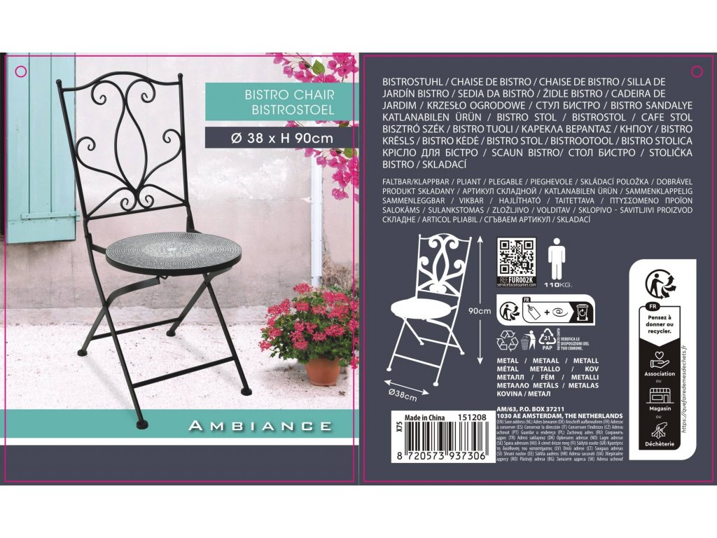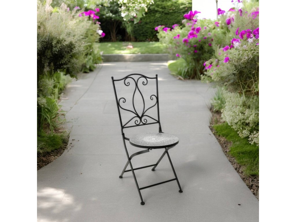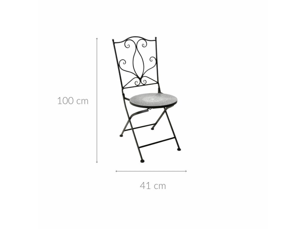 • Mozaika v loftovém provedení: Černé kovové rámy v kombinaci s ozdobným sedákem tvoří elegantní židli, která se skvěle hodí k různým dekorativním stylům v zahradě. Mozaika v tlumených barvách je vynikající alternativou ke klasickým židlím ve španělském stylu. Rozměry: 50 x 38,5 x (v.) 92 cm.