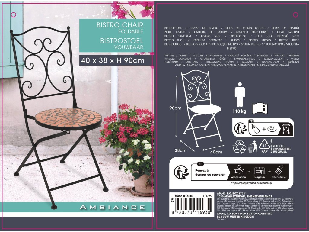 - Unikátní design s mozaikou: Balkónová židle Ambiance se vyznačuje krásnou mozaikou, která dodá kouzlo každé zahradě či terase. Není to jen nábytek, ale také dekorativní prvek, který dodává prostoru výjimečný charakter.