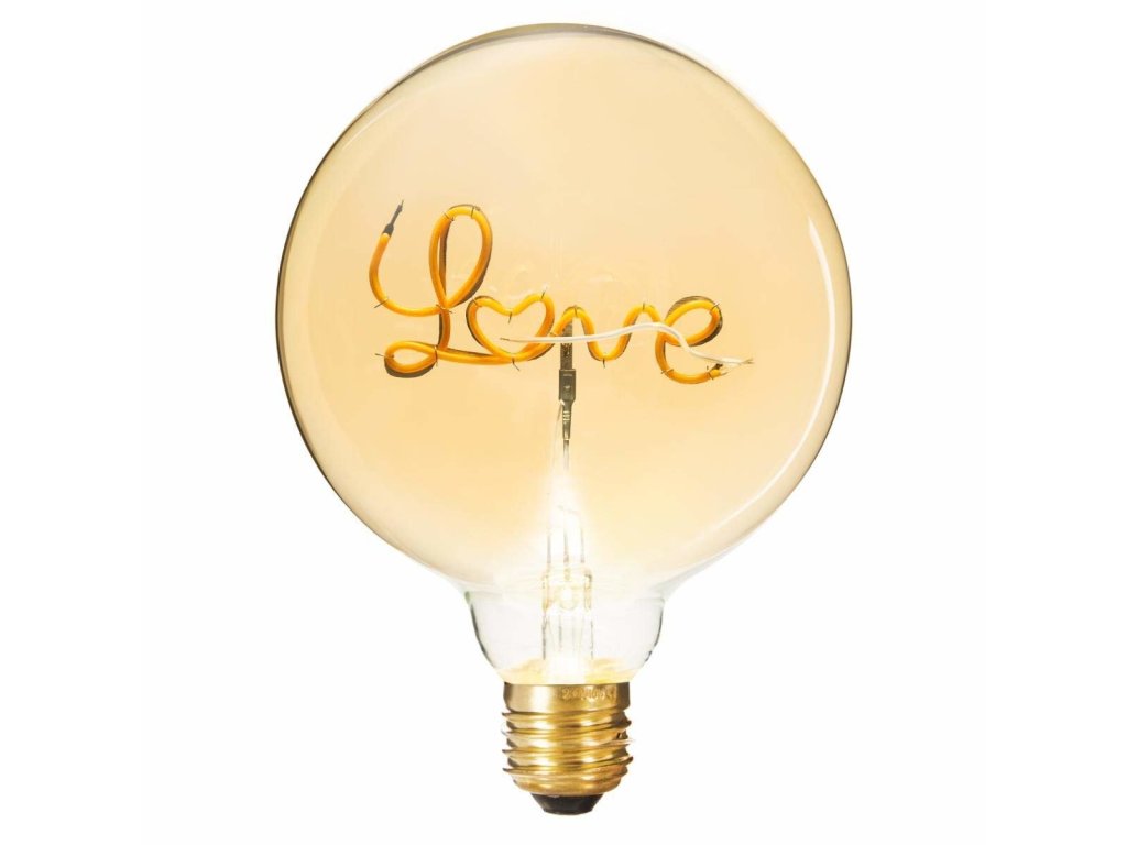 Zajímavý, neobvyklý design a módní stylistika jistě potěší domácnost a hosty. Extrémně módní nedávno nápis „Láska“ přidává žárovku nezapomenutelnému charakteru. Díky němu tento dekorativní prvek určitě nezůstane bez povšimnutí. Díky světelnému toku 100 lumenů vám žárovka poskytne dokonalé světlo. Perfektní jako dekorace pro romantickou večeři a párty. Tato žárovka je také skvělý nápad pro neobvyklý a kreativní dárek, který vám umožní překvapit druhou polovinu nebo zvláštního přítele.