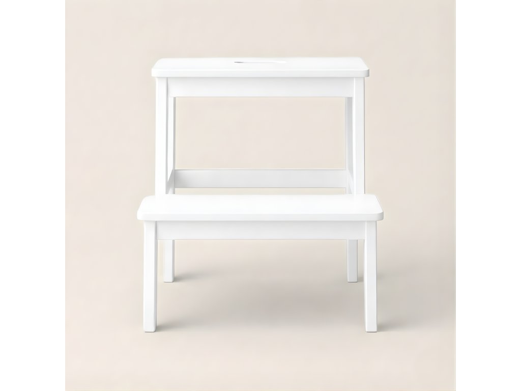 Bambusová stolička se schůdkem KROK, výška 46 cm, bílá