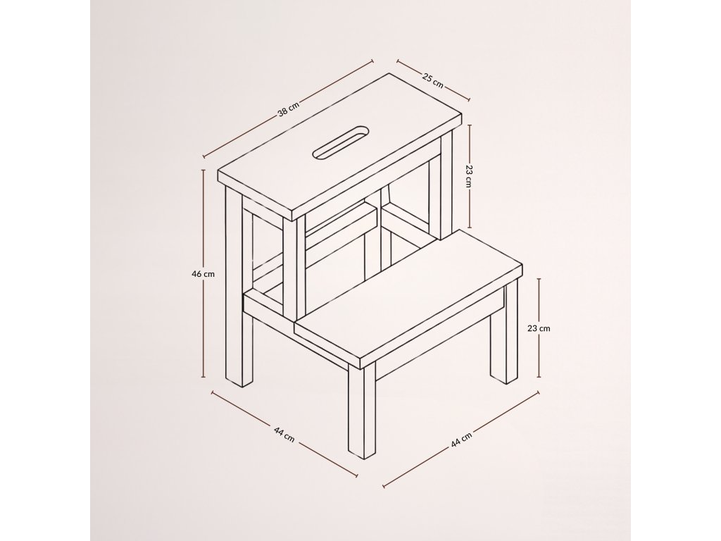 - Bezpečné používání: Každý schod má rozměry 38 x 25 cm, což zajišťuje dostatečný prostor pro stání. Dále pevné konstrukční spojení zaručuje stabilitu během používání.